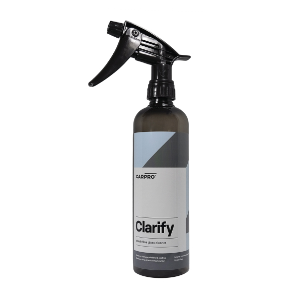 CARPRO Clarify es un limpiador de vidrios exclusivo, formulado para eliminar la suciedad más resistente sin dañar el revestimiento de vidrio hidrofóbico.
