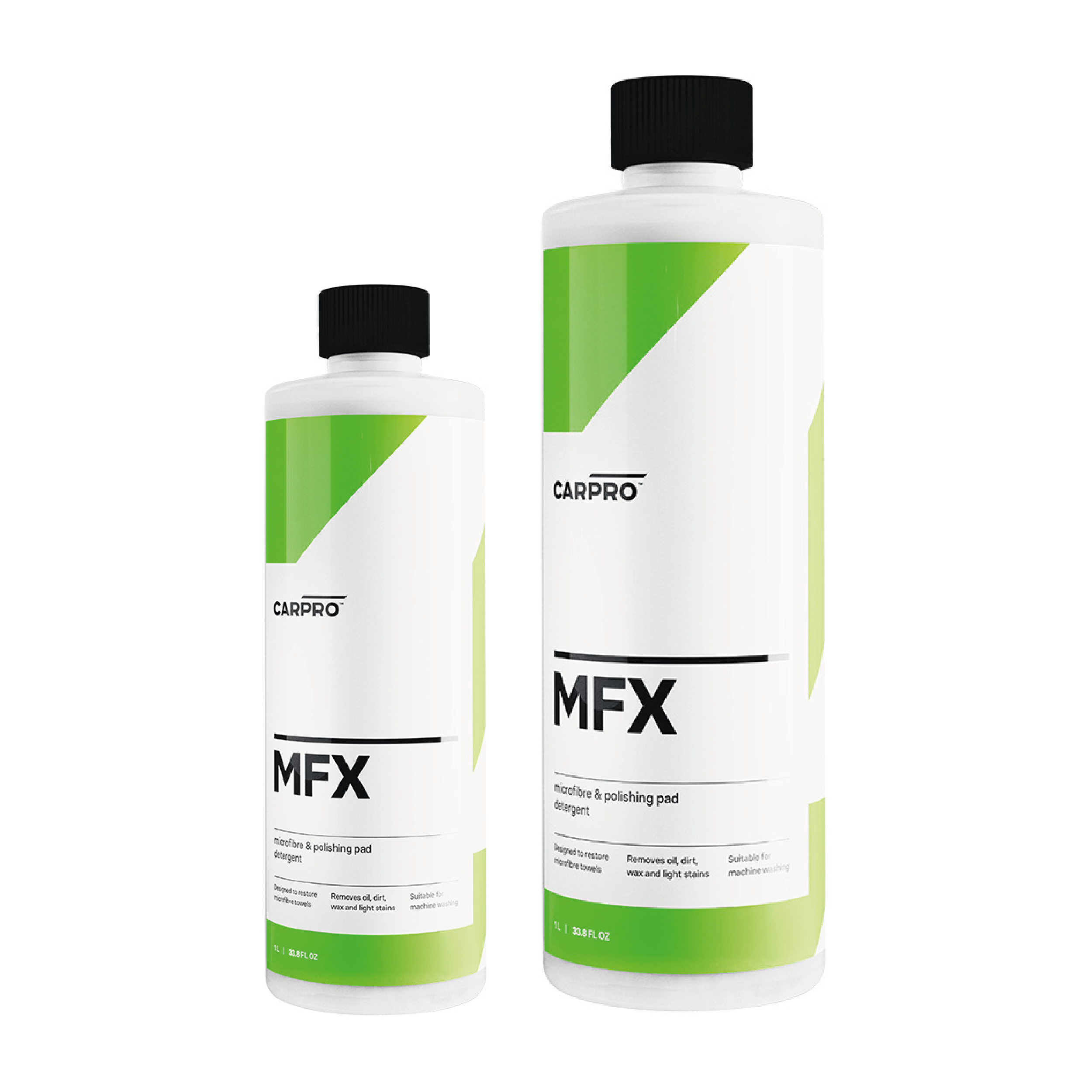 Ya no luches más con toallas de microfibra sucias y toallas de secado obstruidas. CARPRO MFX está diseñado para eliminar aceites, ceras y suciedad de tus paños de microfibra para restaurar el rendimiento de las toallas de secado y los paños de pulido.