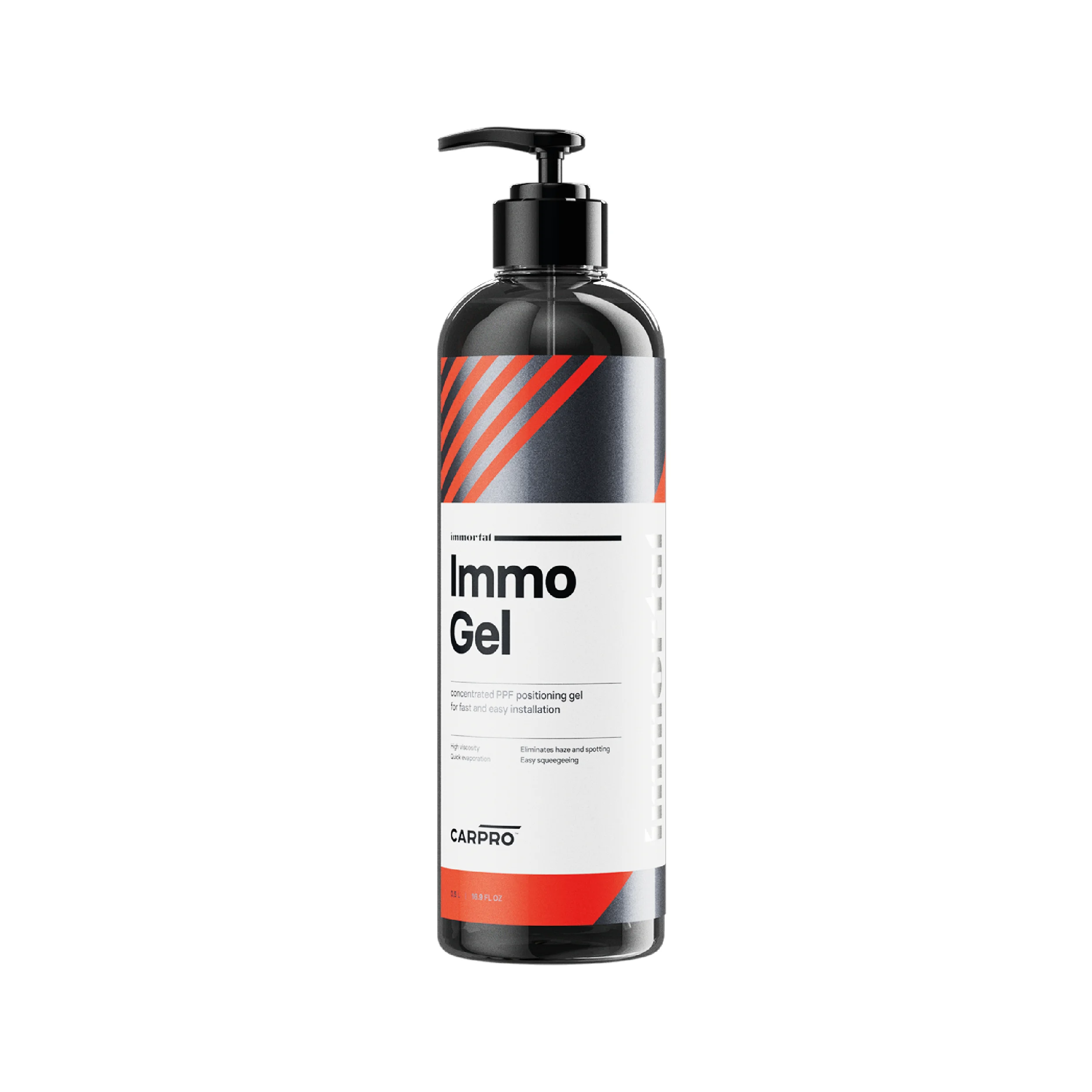 CARPRO IMMORTAL ImmoGel es nuestro nuevo lubricante concentrado para la posición de PPF dedicado al Immortal. Cuando se diluye y se rocía sobre el adhesivo PPF, su alta viscosidad mejora la distribución de la humedad y permite una fácil colocación y uso de la espátula con un riesgo mínimo de veladuras o manchas después de la aplicación.