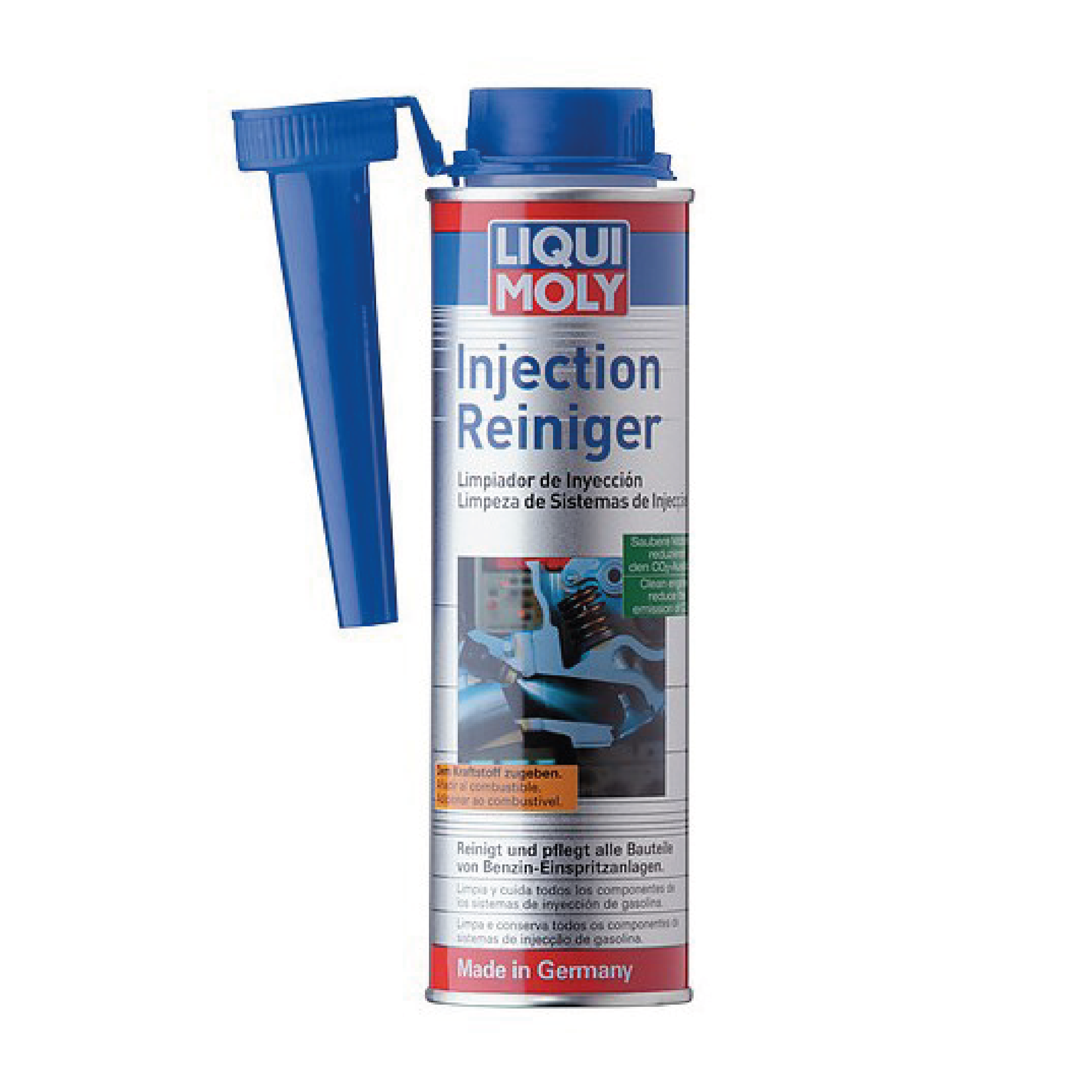 Elimina los depósitos de las válvulas de inyección, las válvulas de admisión, las bujías y la cámara de combustión y evita que se vuelvan a formar. Pone fin a las dificultades a la hora de arrancar y a la marcha irregular del motor. Cuida todos los componentes del sistema de inyección de gasolina. Protege todo el sistema de combustible frente a la corrosión. Mejora la toma de gas y la compresión. Optimiza los valores de los gases de escape y el rendimiento del motor. Los motores limpios consumen menos combustible y reducen las emisiones de sustancias nocivas.