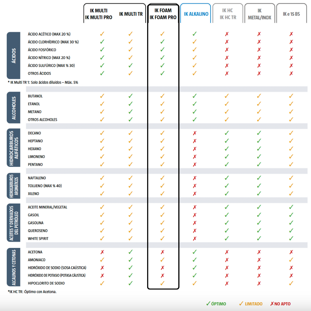 El IK Foam Pro 12 proporciona al usuario una espuma densa y permanente ideal para trabajos de limpieza profesional, saneamiento y desinfección, limpieza de sistemas de climatización (HVAC), lavado y detallado de vehículos, así como para la desinfección de áreas de procesado de alimentos y cocinas industriales.