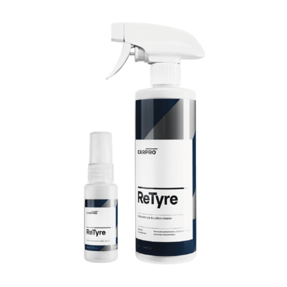 ReTyre está diseñado específicamente para limpiar el material de goma de la acumulación de contaminación, los antiguos acondicionadores de neumáticos y los antioxidantes responsables del envejecimiento, para brindarle un aspecto de neumático nuevo y fresco y preparar la superficie para aplicar BlackOut, Perl, DarkSide o su acondicionador de neumáticos favorito.
