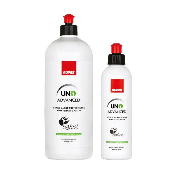 UNO ADVANCED combina un brillo increíble y una protección extremadamente duradera en un esmalte de acabado. La fórmula patentada desarrollada, mezclada y empaquetada completamente internamente por RUPES presenta tecnología microabrasiva altamente técnica fusionada con nano protección de última generación. UNO ADVANCED elimina imperfecciones menores de una variedad de superficies mientras crea una capa duradera de protección que brinda hasta 12 meses de protección contra los contaminantes ambientales y hace que la limpieza sea increíblemente fácil.