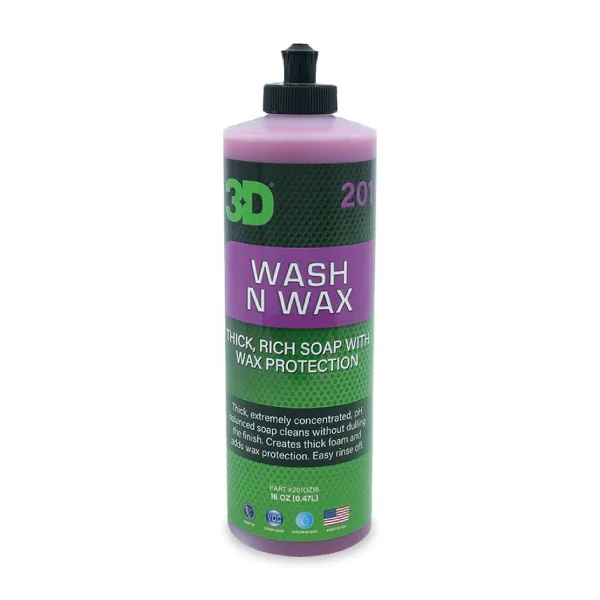 • 3D Wash N Wax es el jabón de lavado de autos perfecto cuando se realiza un lavado de mantenimiento para automóviles, camiones, botes, aviones, autocaravanas y motocicletas.
